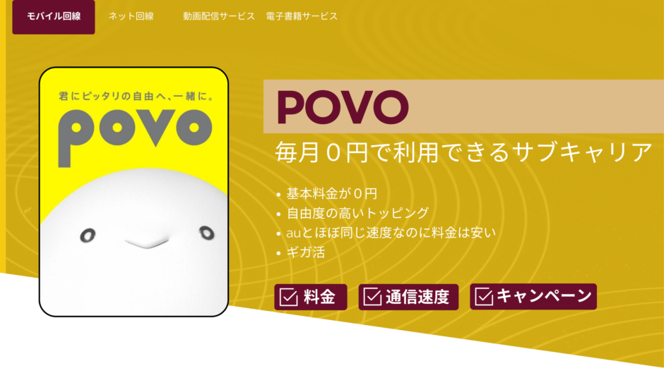 povo(ポヴォ)は、auのオンラインサブブランドで、KDDIが運営しています。