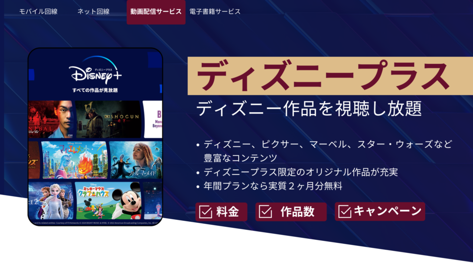 - ディズニー、ピクサー、マーベル、スター・ウォーズなど豊富なコンテンツ