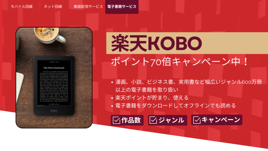 楽天Koboは、楽天のサービスを積極的に利用されている方に特にお勧めの電子書籍サービスです。